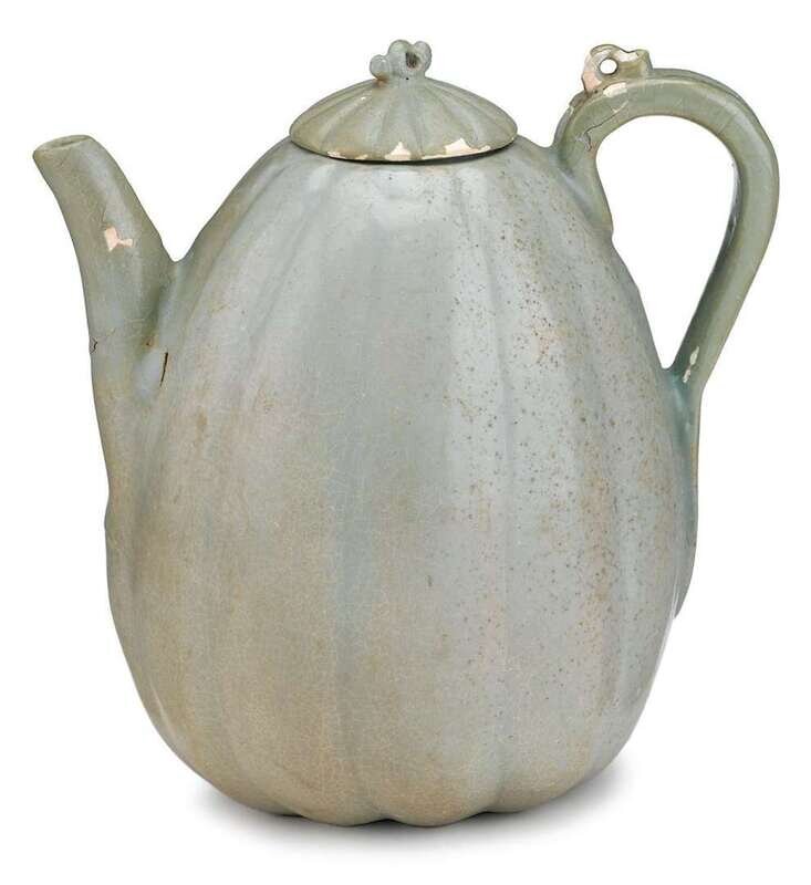 Korean celadon glazed stoneware melon form ewer koryo dynasty