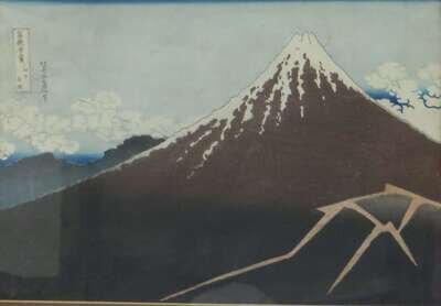 Japanese print with Koho seal; size: Ko-tanzaku; together with a print of mount fuji, 13 3/4 in. x 3 1/4 inches and 14 ½ x 10 inches