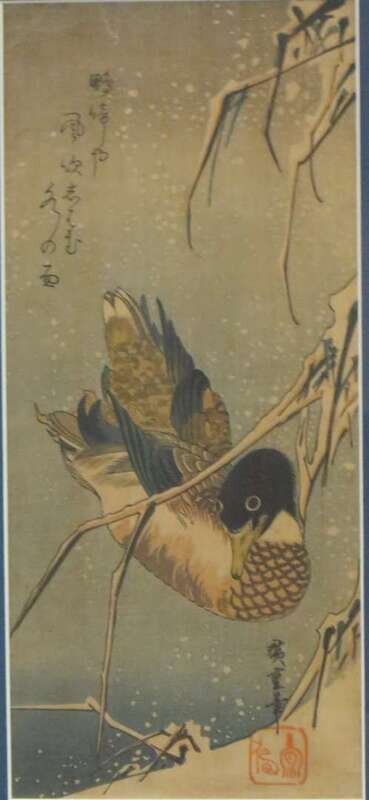 UTAGAWA HIROSHIGE (ANDO) (1797-1858) 1830S Mallard duck and snow-covered reeds; and Mandarin ducks in a stream