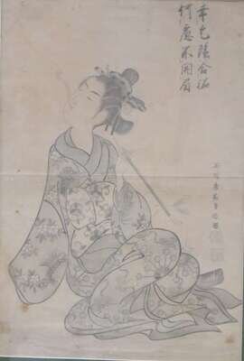 ISHIKAWA TOYONOBU (JAPANESE 1711-1785) 1700S Courtesan Smoking a Pipe