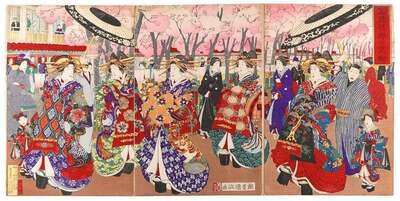 19th century collector's assembly of woodblock prints, including many triptychs.