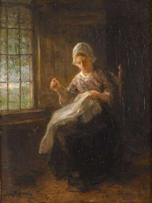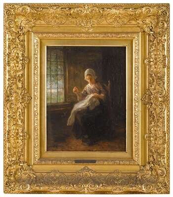 JOZEF ISRAËLS (DUTCH 1824-1911) "GIRL SEWING"