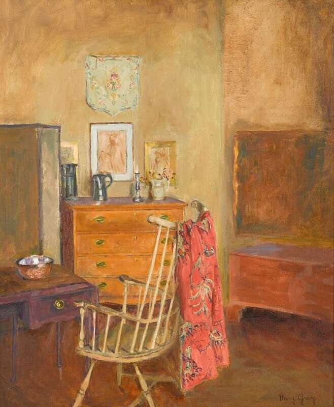 MARY GRAY (AMERICAN 1891-1964) "INTERIOR WITH PENNSYLVANIA ANTIQUES"