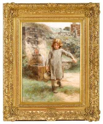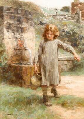 Léon Augustin L'Hermitte (French, 1844-1925) Petite Fille à la Fontaine