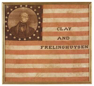 Clay and Frelinghuysen printed cotton 1844 campaign flag circa 1844