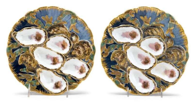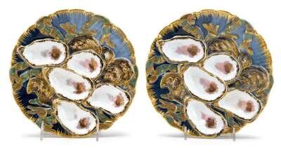 Pair of Rutherford B. Hayes (President, 1877-1881) Presidential pattern oyster plates theodore russell davis (american, 1840-1894) for haviland & co., limoges, france,