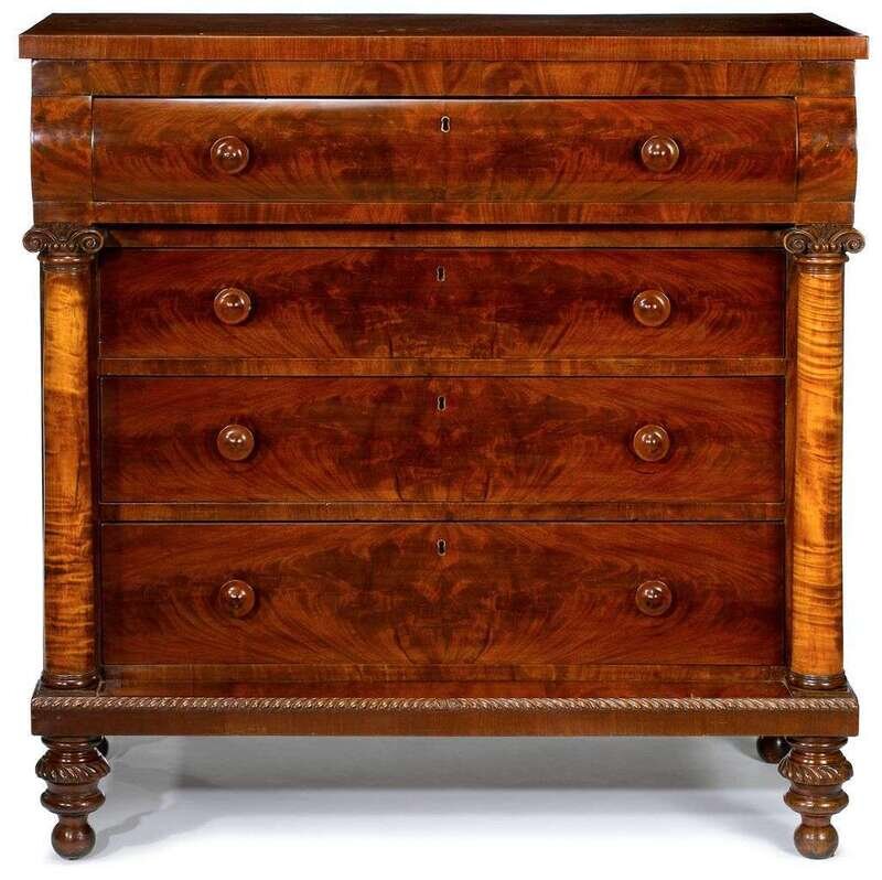 Classical mahogany and maple chest of drawers attributed to anthony quervelle (1789-1865), philadelphia, pa, circa 1830