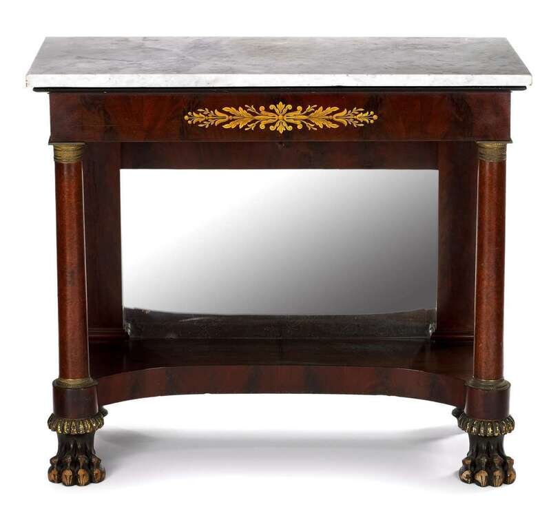 Classical marble top and stencil-decorated pier table philadelphia, pa, circa 1825