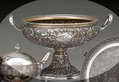 Sterling silver twin-handled repoussé center bowl dominick & haff, new york, ny, third quarter 19th century