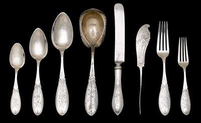 Coin silver partial flatware service james watts (active 1835-1881), philadelphia, pa, third quarter 19th century