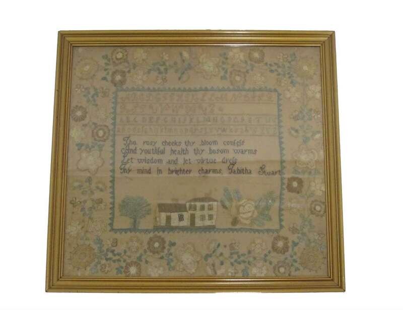 Needlework sampler "tabitha stuart," probably new hampshire, first quarter 19th century
