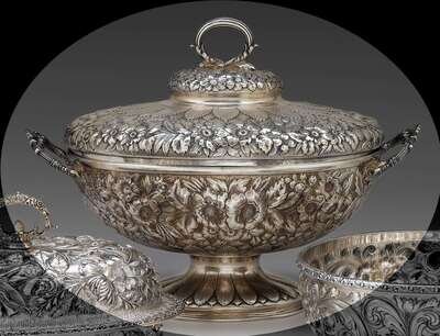 Sterling silver repoussé tureen tiffany and co., new york, ny, 1873-1891