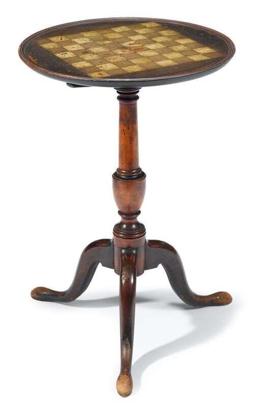 Federal candlestand paint decorated with gameboard early 19th century