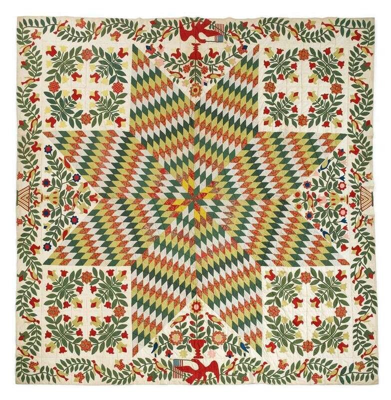 Large pieced, appliquéd and embroidered "Star of Bethlehem" quilt circa 1858