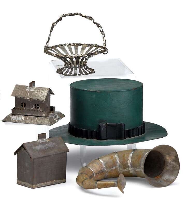 Including a painted top hat, a strapwork candy basket, a hearing trumpet and two house-form banks.