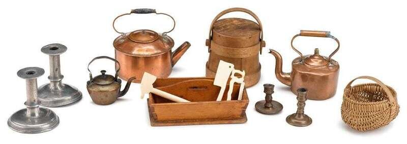 Group of miniature kitchen and household accessories american and european, 18th to 20th century