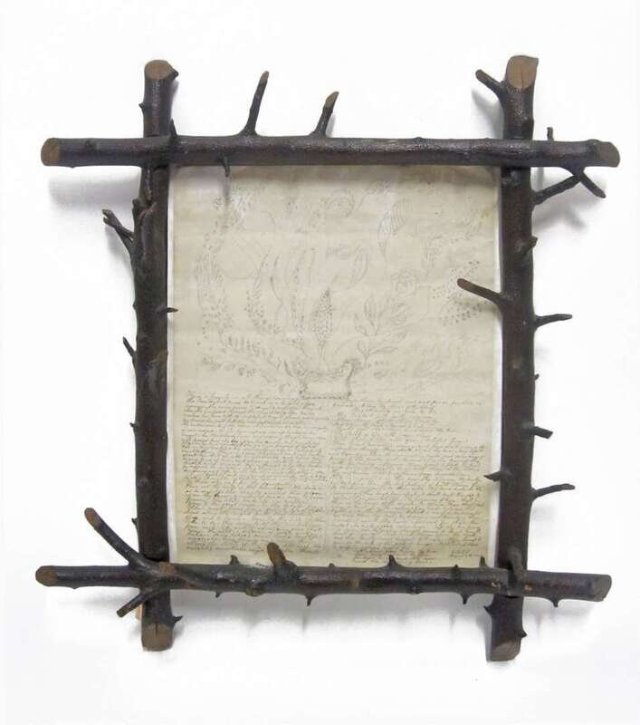"Drawn and written from inspiration by E.A.T. Tregor 657 South 13th St. Phila. Pa August 4th 1866," graphite and ink on paper, in rustic frame.