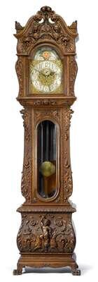 Renaissance Revival carved oak tall case clock case attributed to r.j. horner & co., new york, ny, circa 1895
