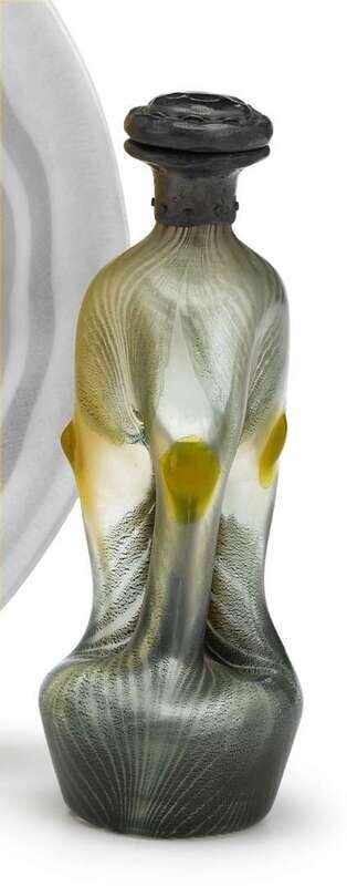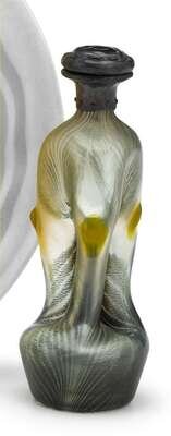 Decorated glass bottle with stopper attributed to tiffany studios, new york, ny, late 19th century