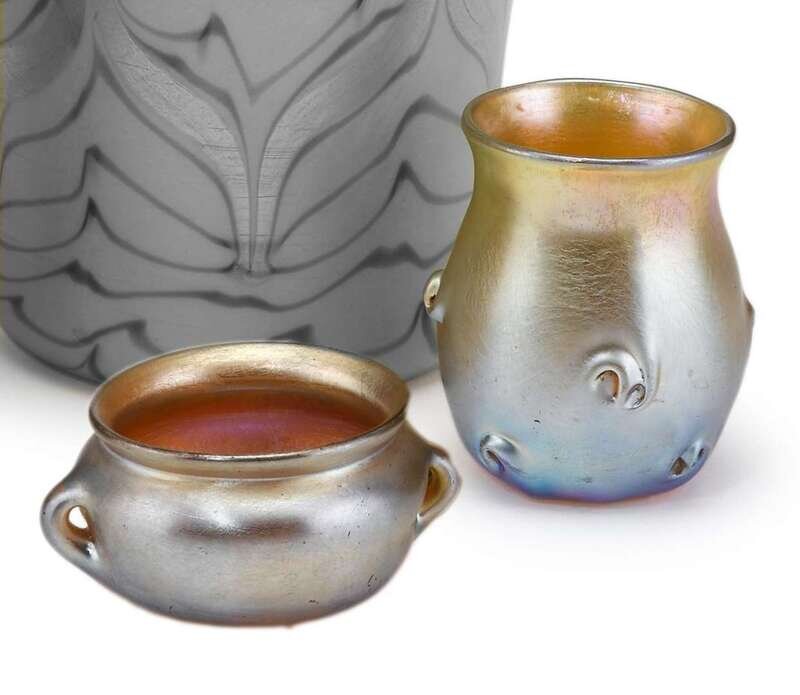 Favrile glass open salt and small vase tiffany studios, new york, ny, early 20th century