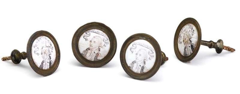 Four enameled and transfer-printed cloak pins with portraits of George Washington england, early 19th century