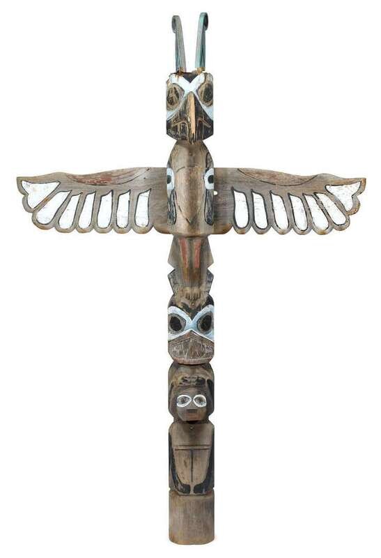 Pacific Northwest Coast carved and painted totem pole early 20th century