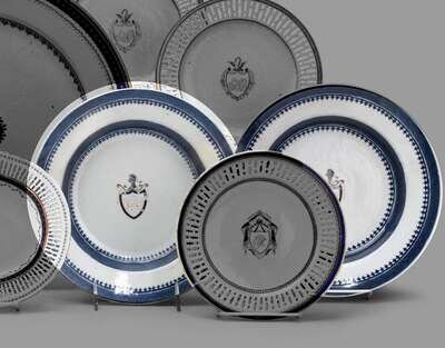 Pair of Chinese Export porcelain armorial soup bowls early 19th century