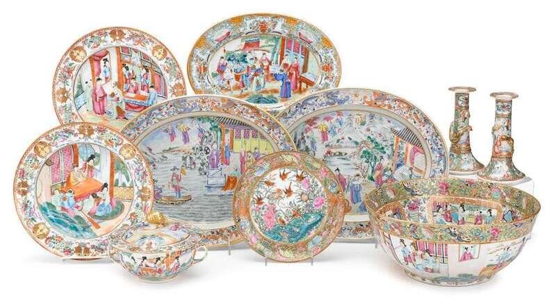 Large collection of Chinese Export porcelain Rose Mandarin tablewares 19th and 20th century