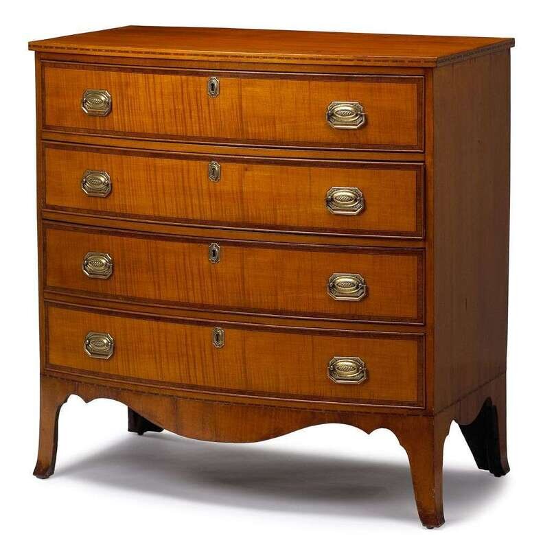 Federal inlaid figured maple bowfront chest of drawers circa 1800