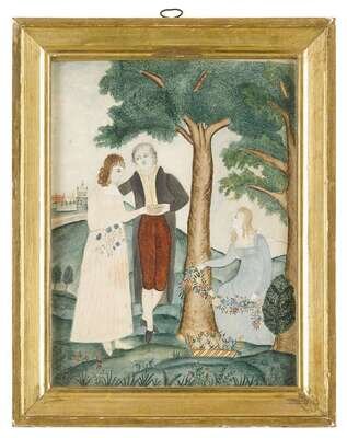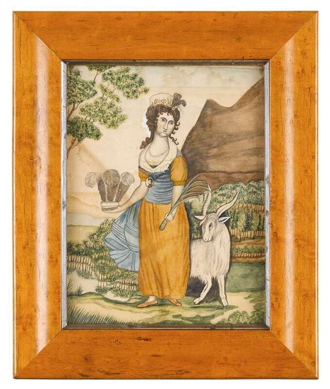 Eunice Pinney (Connecticut, 1770-1849) two works: friendship, circa 1820, and young girl with goat