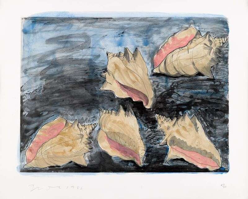 JIM DINE (AMERICAN, B. 1935) "FIVE HANDPAINTED SHELLS"
