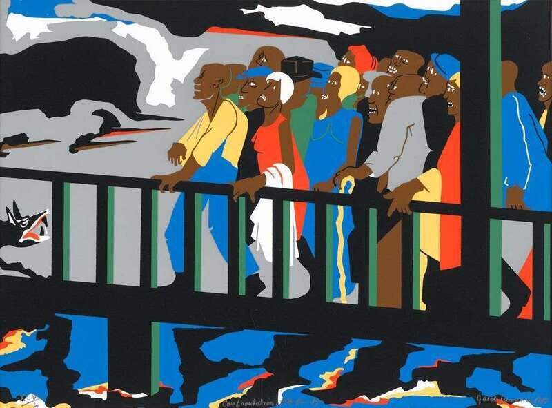 JACOB LAWRENCE (AMERICAN, 1917-2000) "CONFRONTATION AT THE BRIDGE"FROM "NOT SONGS OF LOYALTY ALONE: THE STRUGGLE FOR PERSONAL FREEDOM" SERIES
