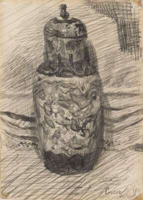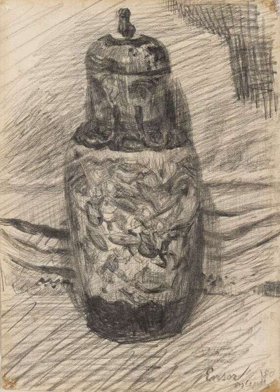 Pencil signed, indistinctly dated and inscribed 'Ostende' bottom right, inscribed 'un vase de chine' and 'crayon' in pencil verso, charcoal on paper.