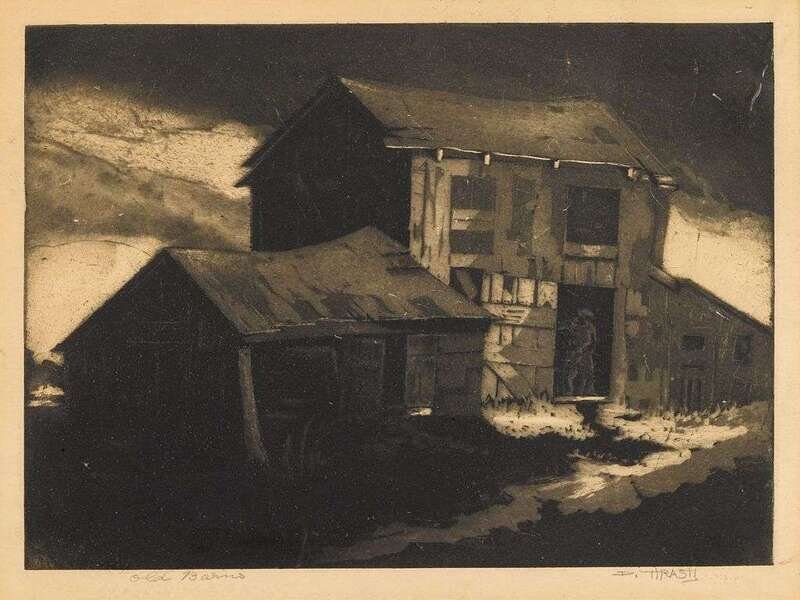 DOX THRASH (AMERICAN, 1893-1965) "OLD BARNS"