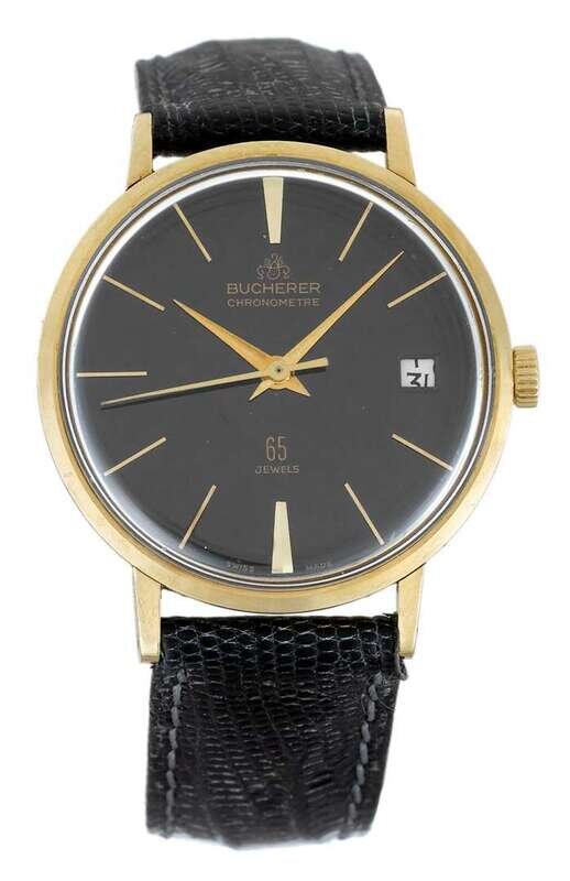 An eighteen karat gold automatic strap wristwatch, Bucherer