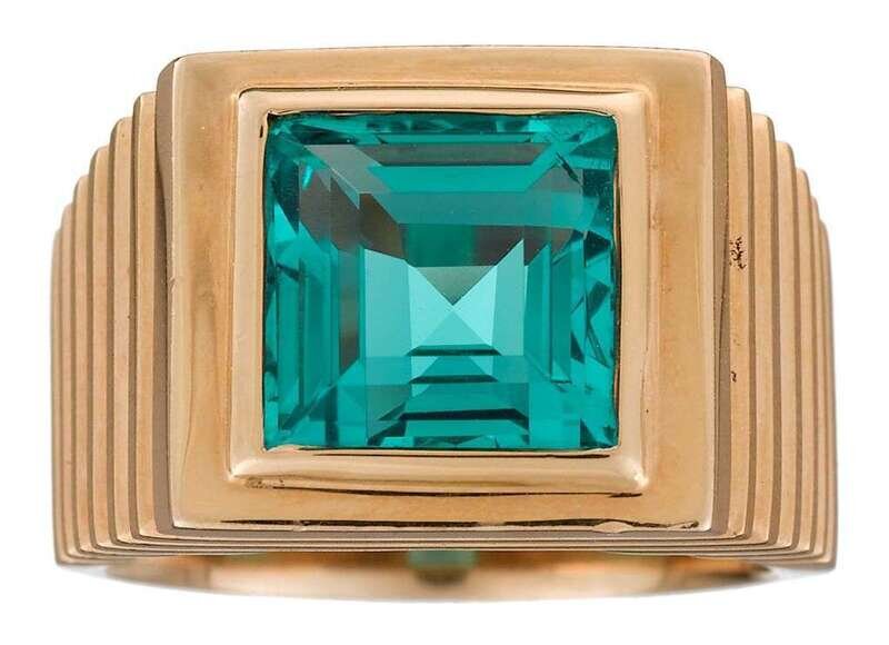 An untreated Colombian emerald and eighteen karat rose gold ring