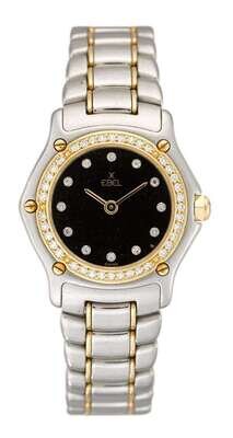 A diamond, stainless steel and eighteen karat gold bracelet wristwatch, Ebel