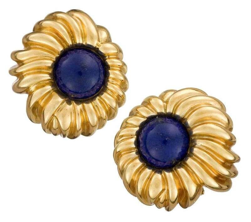 A pair of lapis lazuli and eighteen karat gold earrings, Tiffany & Co.