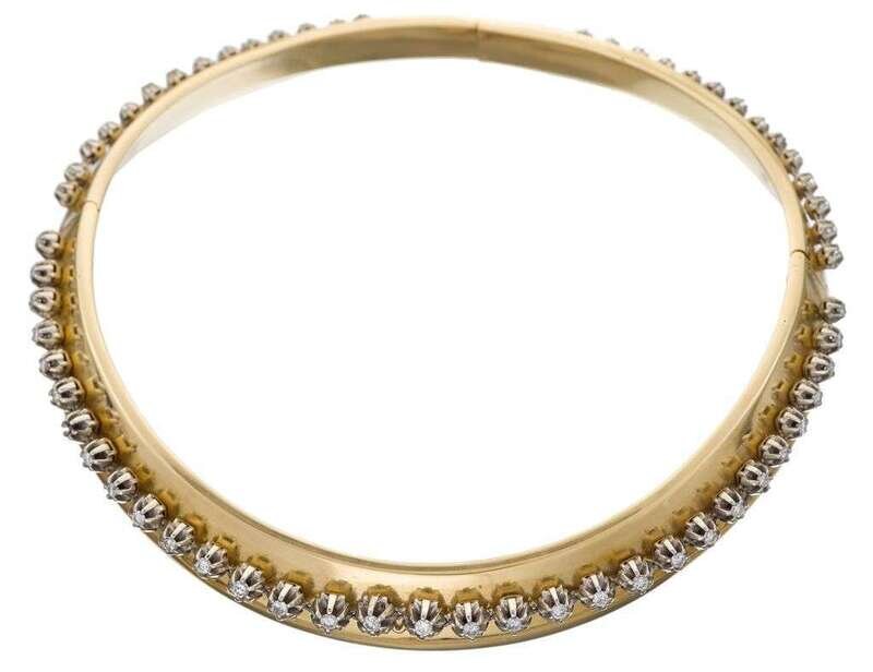 designed as a polished gold collar, enhanced by circular-cut diamonds; total diamond weight approximately: 2.95 carats.