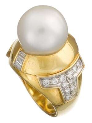 A South Sea cultured pearl, diamond and eighteen karat gold ring and earrings