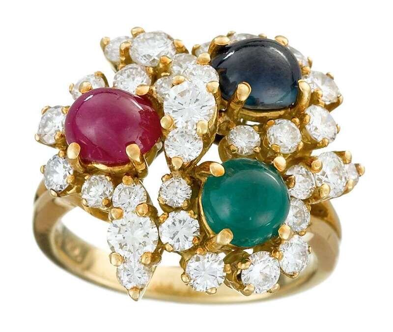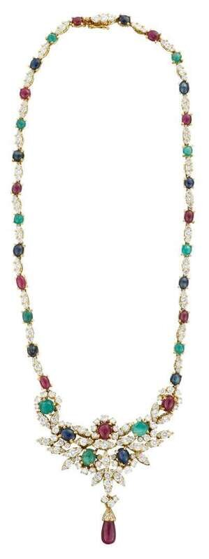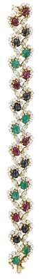 A diamond, emerald, ruby, sapphire and eighteen karat gold suite