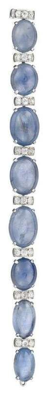 set with eight graduated cabochon sapphires, spaced by circular-cut diamond links; total sapphire weight approximately: 164.80 carats; total diamond weight approximately: 2.35 carats.