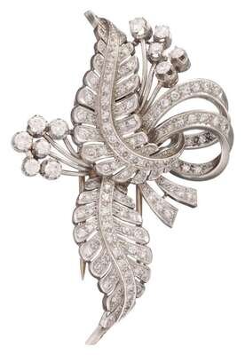 designed as foliate and ribbon motif, enhanced by pavé-set diamonds; total diamond weight approximately: 2.20 carats.