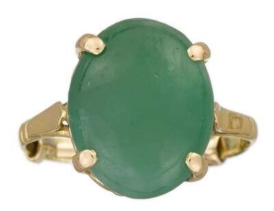 set with an oval cabochon jadeite, measuring: 12.00 x 15.09 x 8.48mm.