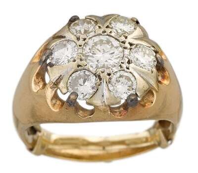set with a round brilliant-cut diamond weighing approximately: 0.45 carat, within a circular-cut diamond surround; remaining total diamond weight approximately: 1.00 carat.