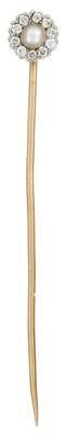 A diamond, pearl, fourteen karat gold and platinum stick pin, Tiffany & Co.