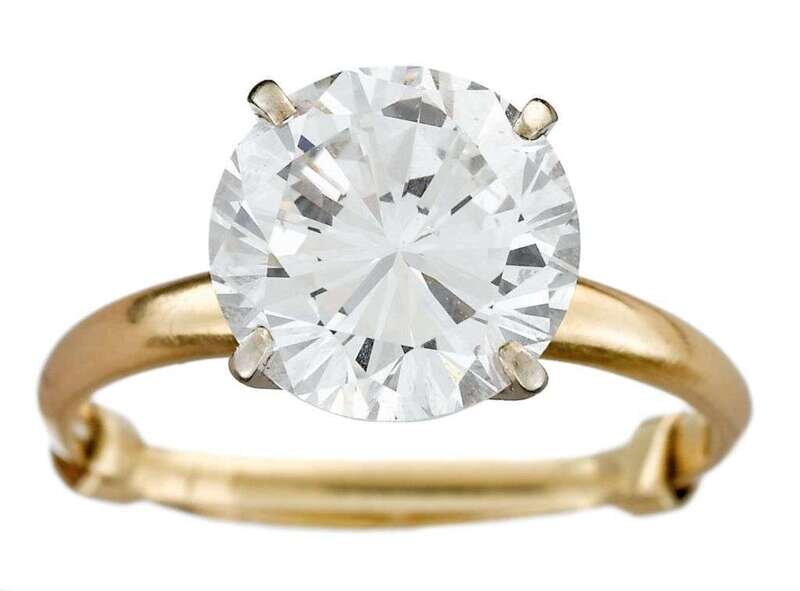 set with a round brilliant-cut diamond approximately: 3.20 carats.