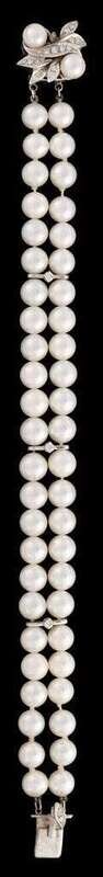 A cultured pearl, diamond and fourteen karat white gold bracelet, Tiffany & Co.