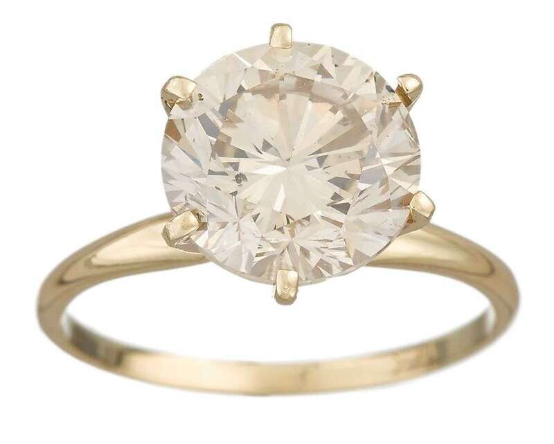 set with one round brilliant-cut diamond weighing: 4.13 carats.