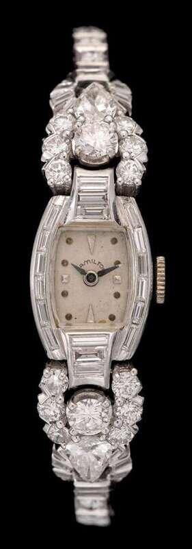 A diamond and platinum bracelet watch, Hamilton circa 1940